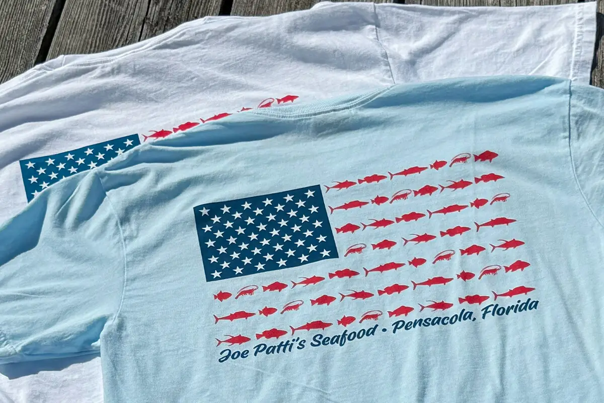 Joe Patti’s Seafood Company – Celebrate the Now and Then of our Pensacola Community. We love Florida, Our Panhandle & Our Country. Front Joe Patti’s Seafood Co Graphic. Don’t fall for fakes – this is Original Joe Patti’s Gear!