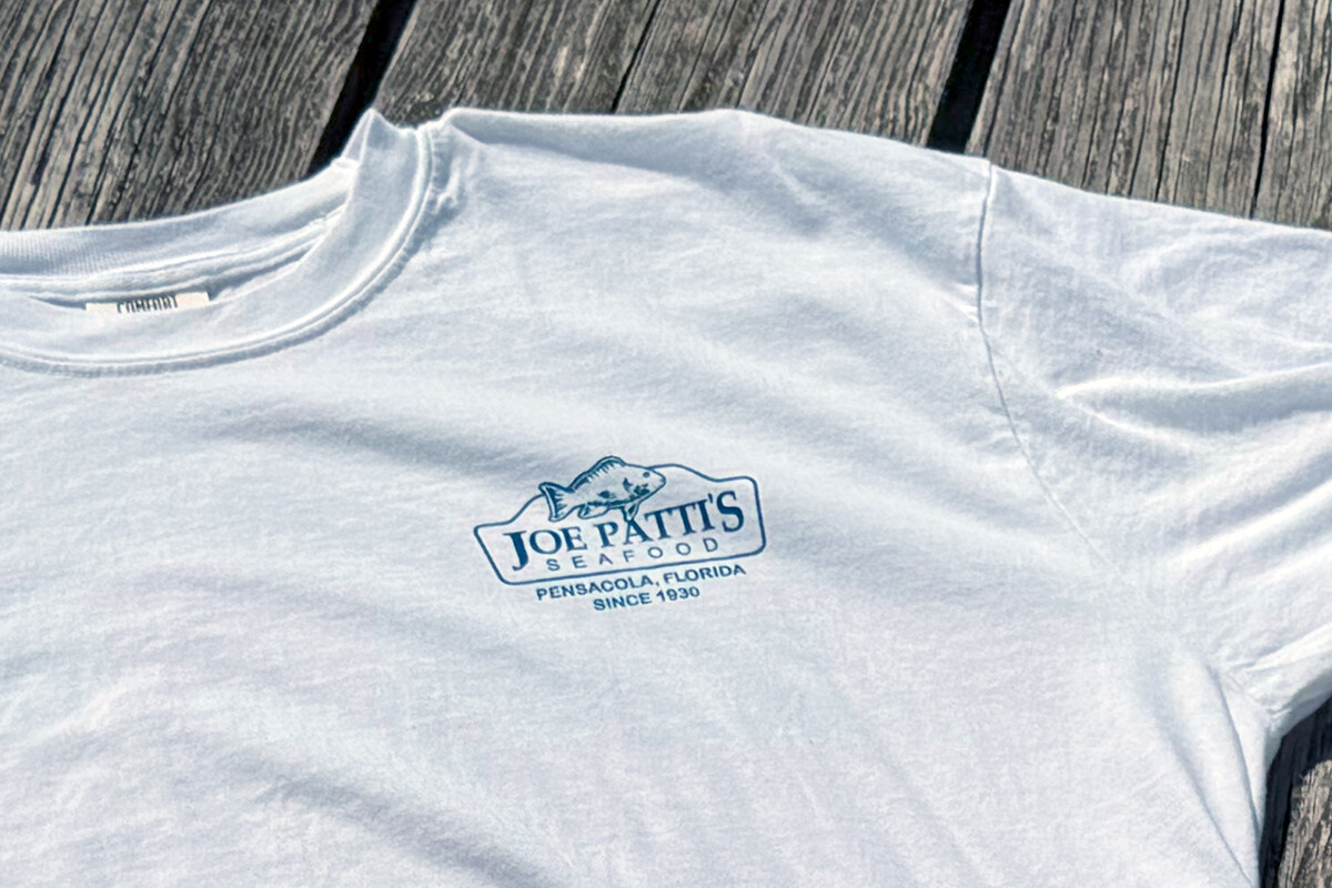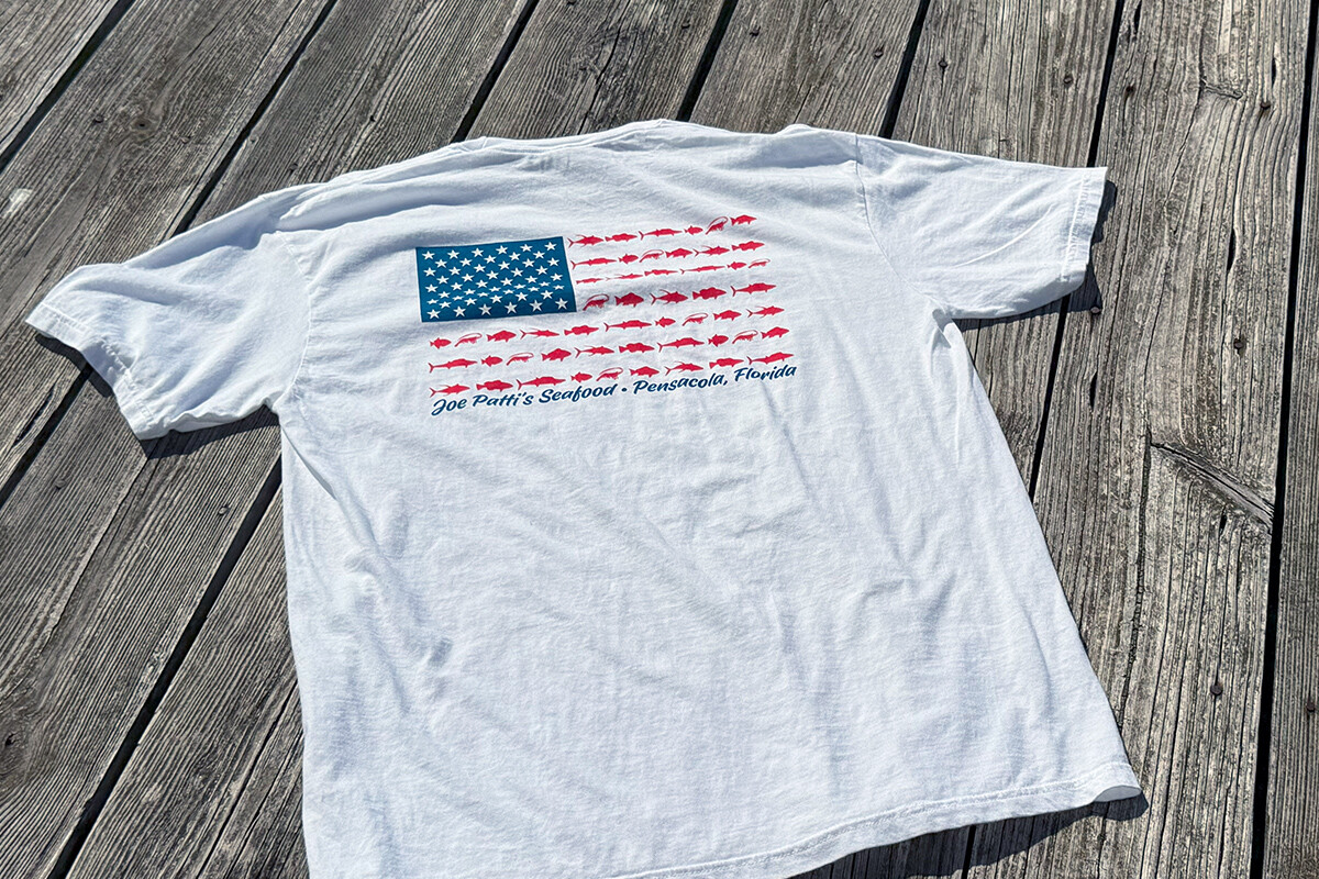 Joe Patti’s Seafood Company – Celebrate the Now and Then of our Pensacola Community. We love Florida, Our Panhandle & Our Country. Front Joe Patti’s Seafood Co Graphic. Don’t fall for fakes – this is Original Joe Patti’s Gear!