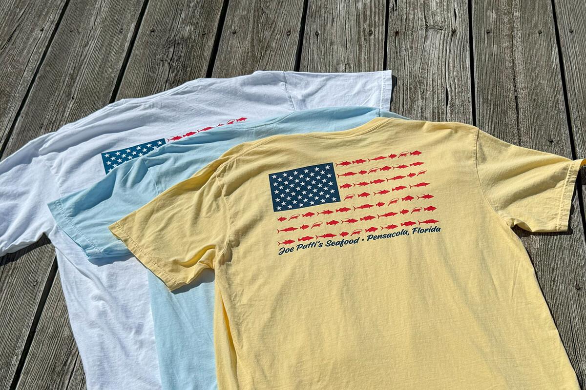 Joe Patti’s Seafood Company – Celebrate the Now and Then of our Pensacola Community. We love Florida, Our Panhandle & Our Country. Front Joe Patti’s Seafood Co Graphic. Don’t fall for fakes – this is Original Joe Patti’s Gear!