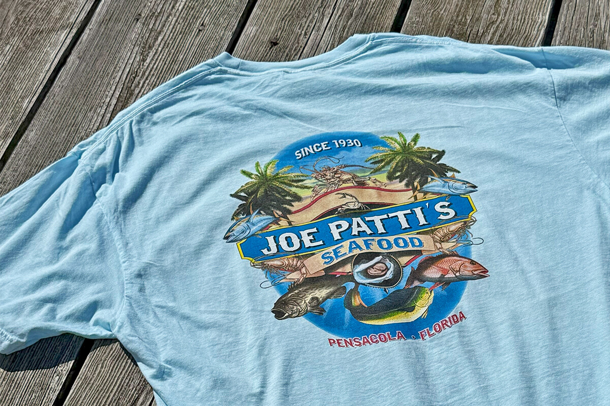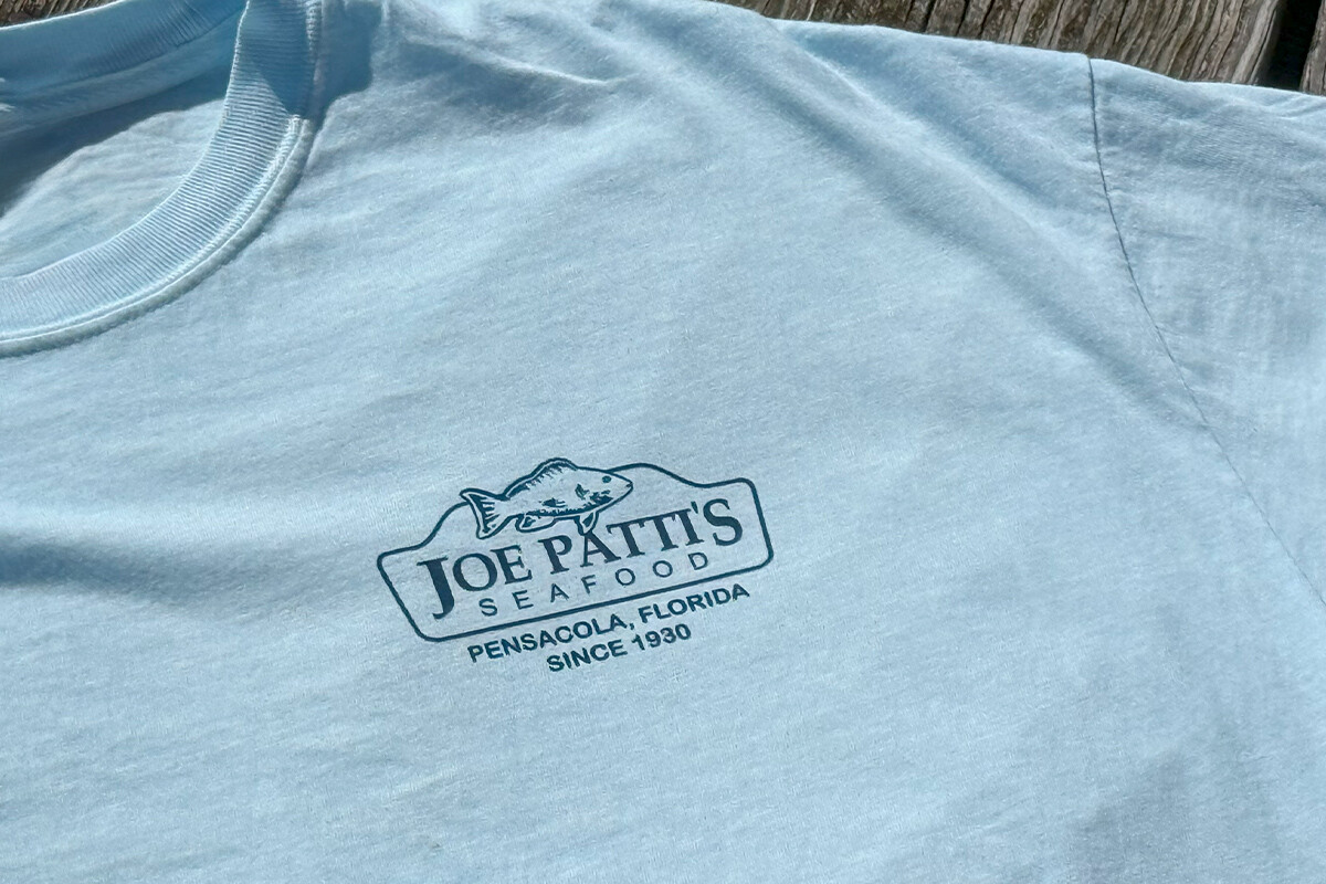 Joe Patti’s Seafood Company – Celebrate the Now and Then of our Pensacola Community. We love Florida, Our Panhandle & Our Country. Front Joe Patti’s Seafood Co Graphic. Don’t fall for fakes – this is Original Joe Patti’s Gear!